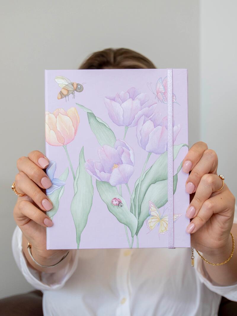 Viene con reproducciones de mi arte en acuarela, más de 100 hojas A5 en color avena, para usarlas durante todo el año. Super liviana, con lindas frases motivadoras, sección de metas, notas, finanzas y mood tracker. Medida total: 16.5cm x 21.5cm